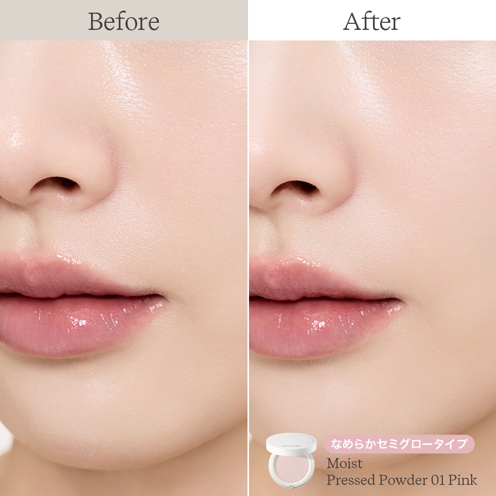 朝の仕上げにも日中のお直しにも使え、持ち運びに便利なプレストパウダーがバイユア初登場。塗った瞬間、まるで美肌フィルター*1をかけたように、毛穴や凹凸をレタッチ*1してつるんとなめらかに見せるパウダーです。「パウダーをつけると白くマットな肌になってしまう」というお悩みに応え、肌なじみのよさにとことんこだわりました。秘密は、高速噴射の空気圧で粉砕した均一微粒子パウダー。ベタつきや皮脂ぐすみを防ぐ*1混合肌向けの「ノーセバム」と、パサつきや乾燥ぐすみを防ぐ*1乾燥肌向けの「モイスト」、2種からお選びいただけます。
